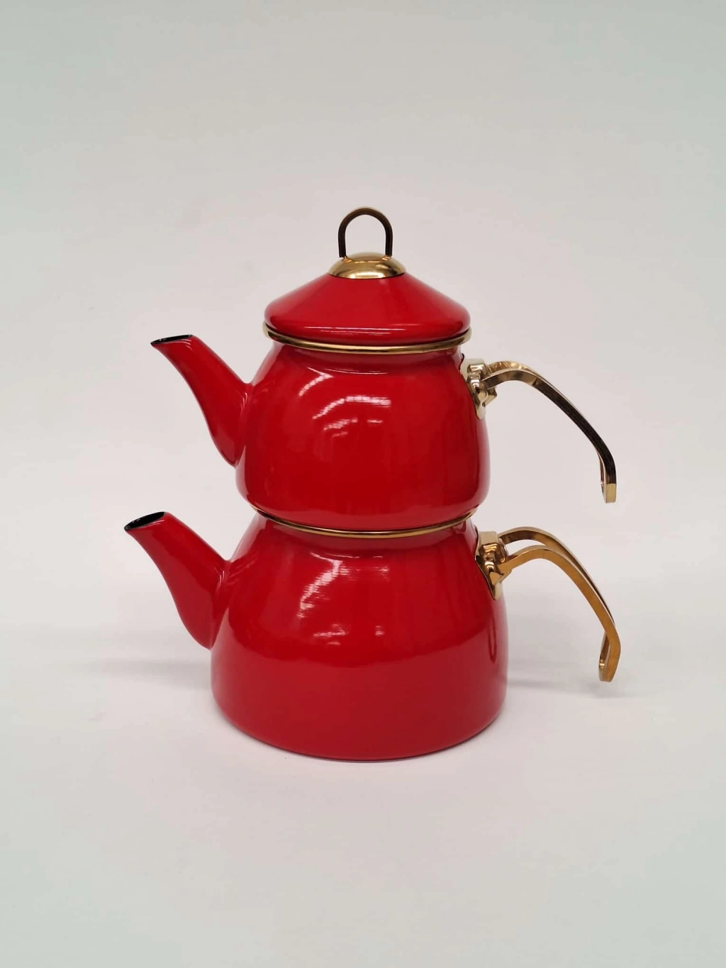 Benante Emaye Çaydanlık Takımı Kırmızı